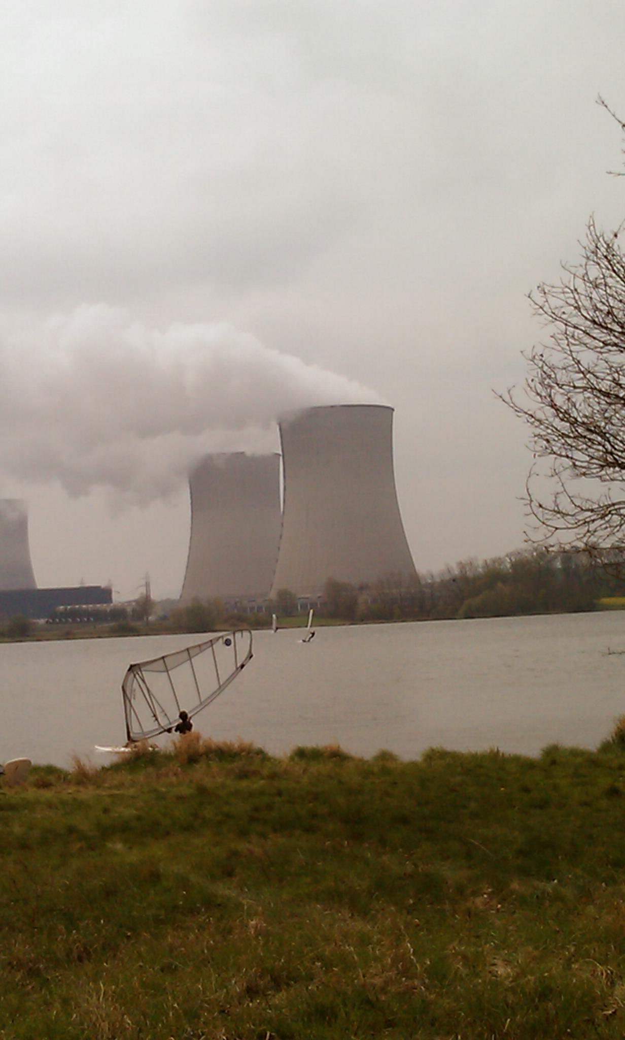 Didactique de navigation par vent Nord : mise à l’eau à l’extrémité ouest du spot, cela ne rentre pas trop mal au retour, même après avoir navigué le long de la rive nord. Alors aucun besoin de se mettre en infraction en mettant à l’eau côté centrale et de risquer personnellement une amende et des ennuis pour tous ......